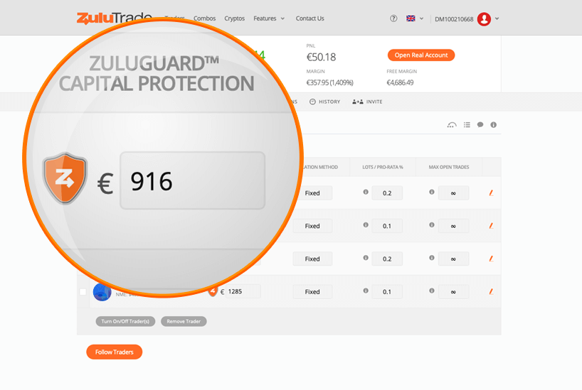 ZuluGuard ™حماية رأس المال متاح لجميع المستثمرين وهو إلزامي للنسخة الأوروبية من خدمتنا حيث إنه يخلق درع حماية لرأس المال الاستثماري الخاص بك!